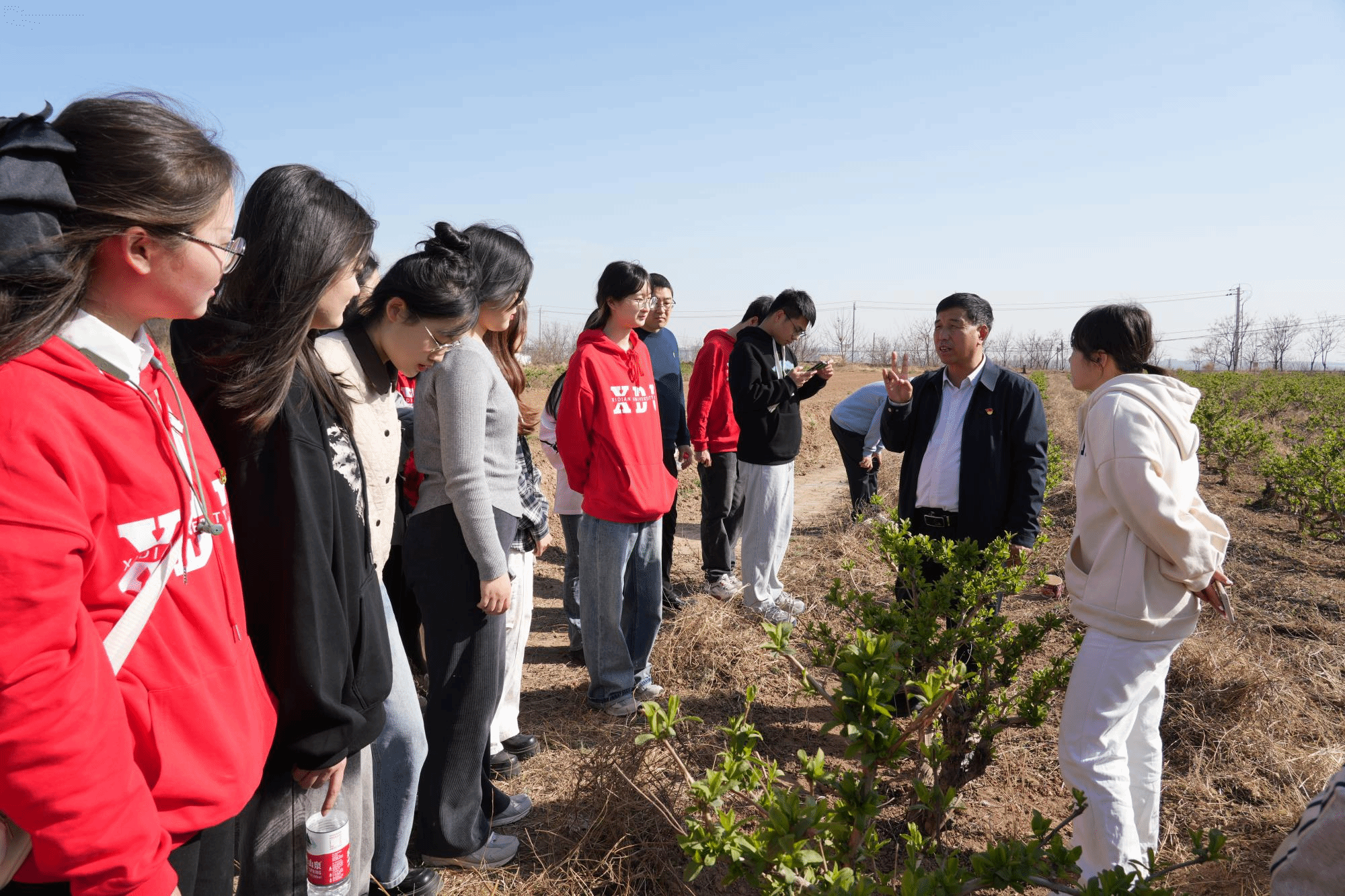 纸上得来终觉浅,绝知此事要躬行。时值春分,金银花树正发芽冒绿,闫家村田间地头一片生机盎然。参观完产业园区并了解闫家村金银花产业发展脉络后,公司师生跟随王书记来到金银花种植基地,走进种植金银花的田间地头,观察金银花生长情况,感受“金银”魅力。虽然此时金银花尚未开放,但在阳光的照耀下,金银花的嫩叶泛着翠绿的光泽,仿佛在诉说着春天的故事。公司师生们围在王书记的周围,听他讲解金银花的种植技巧、生长习性以及市场价值。师生们仔细观察金银花的生长情况,询问种植过程中遇到的问题和解决方法,王书记一一解答。“金银花开幸福来”,从王书记和村民们洋溢着笑容的脸上,我们看到了闫家村的未来就如同这金银花树一样充满着无限希望。