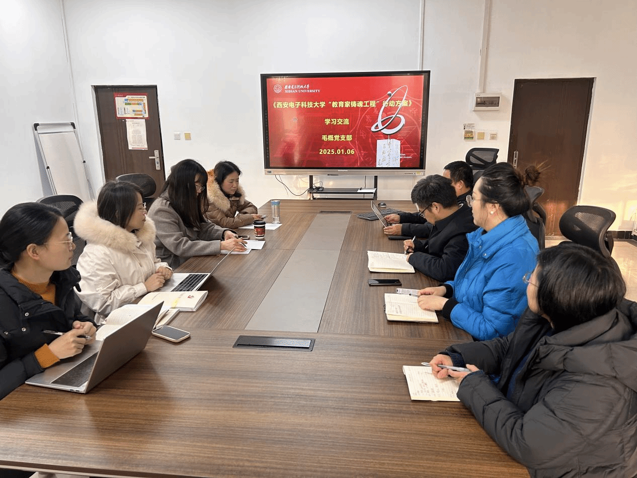 (通讯员:曹飞)1月6日上午,​PA视讯官方网站毛概教研室党支部在南校区信远Ⅱ区221会议室召开学习交流会,共同学习《PlayAce官方网站“教育家铸魂工程”行动方案》会议由党支部书记曹飞主持,党支部全体党员参加会议。