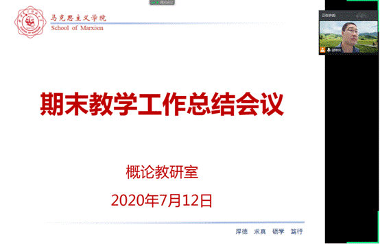 (通讯员 赵常兴)7月12日上午,PA视讯官方网站概论教研室召开了期末教学工作总结会议,对本学期线上教学工作进行了全面总结,并对期末考试进行了统一安排部署。会议由概论教研室主任、概论课程负责人赵常兴主持,课程组全体教师参加。