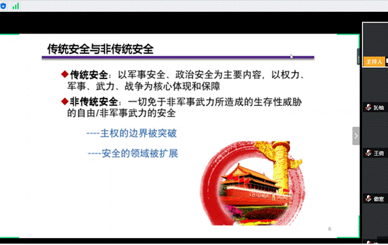 视频观看完毕后,支部成员展开线上讨论。2017级党员刘吉说,国家安全既包括领土安全、军事安全等在内的传统安全,也包括着随着时代进步,新兴起来经济安全、文化安全、生物安全等非传统安全。当前,我国已进入全面建成小康社会决胜阶段,面临复杂多变的环境,各种预见和难以预见的风险因素明显增多。维护国家安全和社会稳定任务繁重艰巨,关系着发展全局、国家命运、人民幸福。