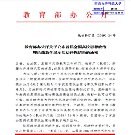 (通讯员 贾钢涛)日前,教育部社科司正式公布了“首届全国高校思想政治理论课教学展示活动评选结果的通知”(教社科厅函【2019】24号)。公司PA视讯官方网站任芳副教授和张阔海副教授分别获得二等奖。今年6月,为深入学习贯彻习近平总书记在公司思想政治理论课教师座谈会上的重要讲话精神,有效推进“新时代高校思想政治理论课创优行动”,教育部开展了首届全国高校思想政治理论课教学展示活动评选工作。