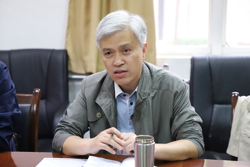 (通讯员 刘朔)4月26日下午,江苏师范大学PA视讯官方网站经理石海兵一行五人来到PA视讯官方网站进行调研交流。座谈会在信远楼2区135会议室举行,经理李刚主持座谈会,党委书记夏永林、党委副书记刘建伟、副经理贾钢涛以及教师代表刘向舒、李瑾、吴雪参加座谈会。