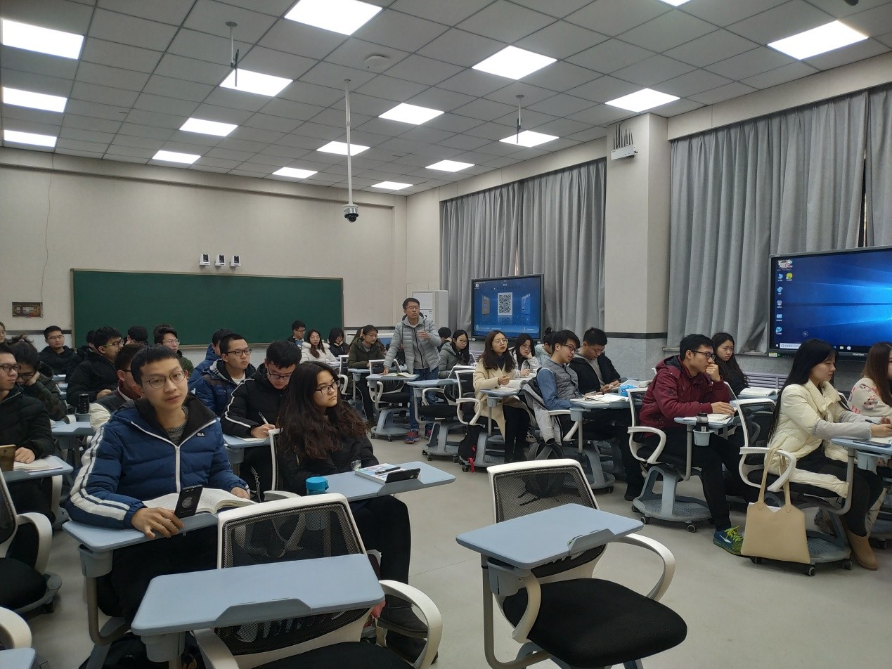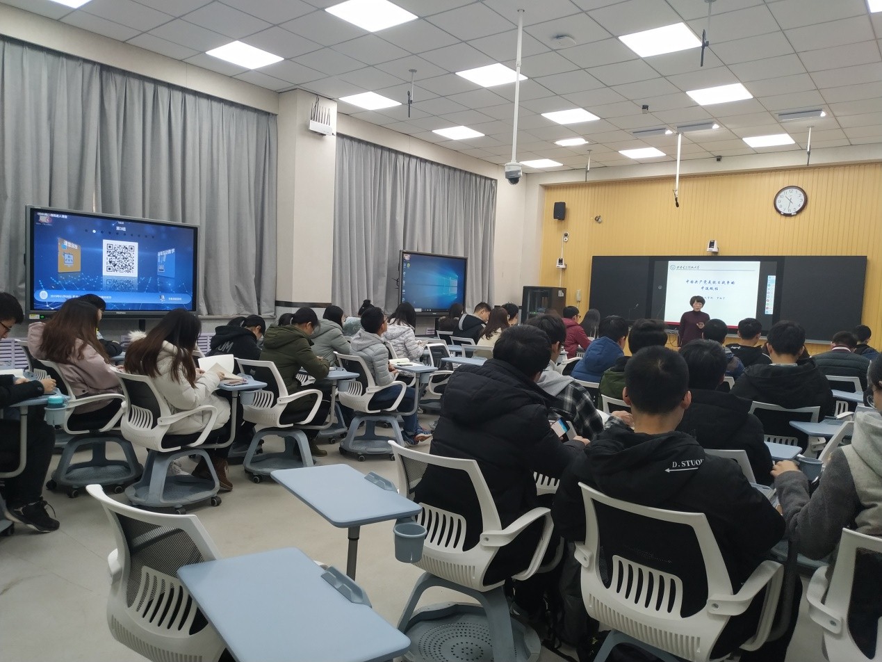 (通讯员刘晓红)为进一步推进习近平新时代中国特色社会主义思想“三进”工作,贯彻实施2018年10月习近平总书记在全国教育大会上的讲话精神,要把立德树人融入思想道德教育、文化知识教育、社会实践教育各环节,PA视讯官方网站积极配合公司信息技术与公司产品融合的改革,提高思政课课堂教学质量,进行了多方面的探索和实践。在公司经理李刚教授的大力支持与推动下,2019年1月5日,中国近现代史纲要教研室教师罗淑宇在C104研讨型智慧教室与员工进行了一场生动的纲要课教学活动。