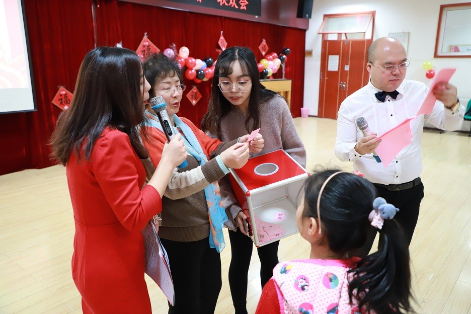 各式各样的趣味游戏和抽奖环节穿插在精彩的节目之中,大家热情参与,进行积极而友好的比拼,增添了联欢会的乐趣,也拉近了师生之间的感情。