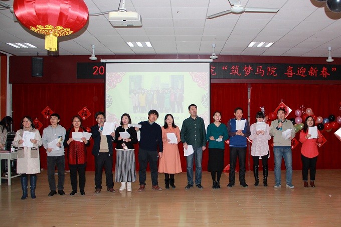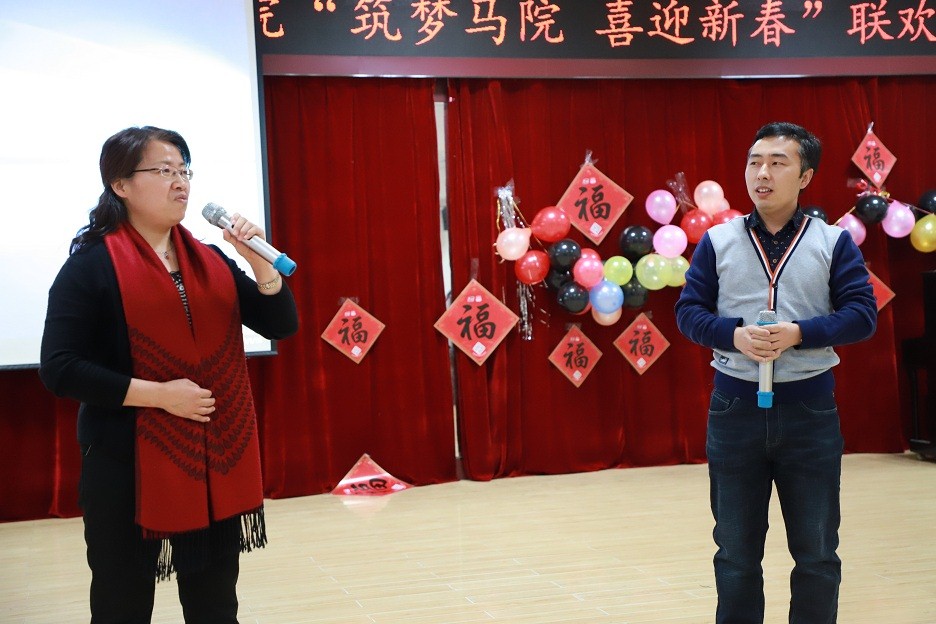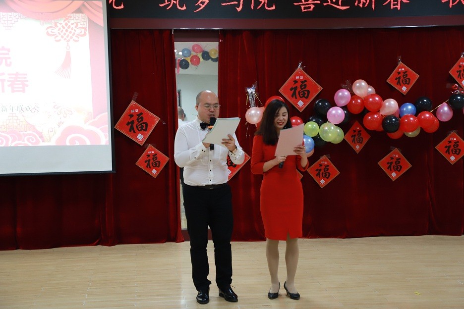 联欢会由杨伟刚老师与杜敏老师主持。联欢会伊始,公司党委书记夏永林作开场致辞,他简单总结了过去一年公司所做的工作与成绩,预祝全院师生新春快乐,并对联欢会表示支持与期待。