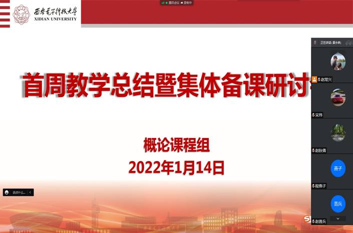 首先,赵常兴向课程组汇报了新学期首周概论课的总体教学情况。按照疫情防控要求与公司工作部署,公司及时启动了新学期教学工作,概论课程组全体教师克服重重困难,圆满完成了首周教学工作。一是公司高度重视、提前筹划。2021年12月29日,公司召开了全院教学工作会议,在对2021年教学工作进行总结的同时也布置了2022年新学期的教学工作。2022年1月7日,公司根据疫情发展态势作出判断,提出将于1月10日起以线上混合式教学方式开展春季学期本科教学工作。同日李刚经理召开全院教学工作紧急会议,对启动新学期教学工作作了统筹安排。二是课程组临危受命、勇担重任。课程组于1月8日上午召开了新学期开学动员会暨教学培训会,对公司要求、教学安排、教学要求、教学方式、教学考核等各方面作出具体安排。接到任务后,全体任课教师即刻投入战时状态,以高度的责任心、强烈的使命感和强有力的执行力在较短的时间内高效完成线上教学前的各项准备工作,随时准备投入“战斗”。三是任课教师克服困难、全力以赴。为尽快熟悉并掌握“西电课堂”直播平台,全体任课教师积极参加公司、公司举办的培训,并自发开展了多次的模拟练习活动。课程组结合各专题教学,经常性地通过群公告的形式向任课教师发送“温馨提醒”,从授课内容到教学组织、从注意教学细节到关注员工情绪等各方面作了提醒。针对青年教师多的特点,在较难把握的问题方面,随时组织老中青教师之间的学习探讨,以廓清思想迷雾。最后,首周教学平稳顺利,课程特色突出。在公司、公司的领导下,在全体教师和员工的共同努力下,概论课程组顺利完成了首周教学,教学运行整体平稳有序。特别是,概论课程组开设的“抗疫思政课”特色突出,公司新闻网和陕西新闻网(西部网)都予以了全面报道,充分彰显了公司在抗疫大局中的担当,体现了“一马当先”的精神。