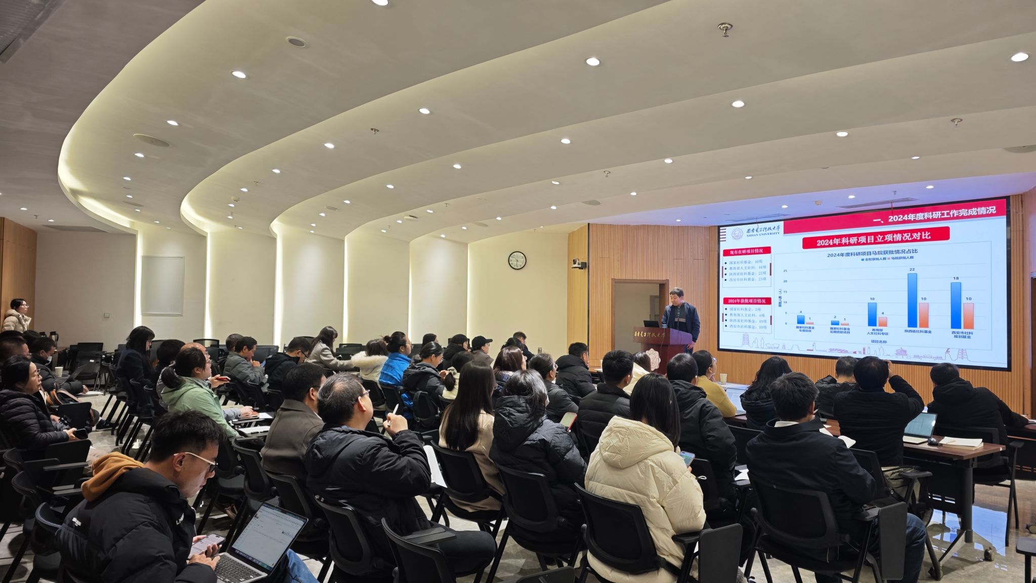刘建伟总结了2024科研工作取得的成绩,对比相关兄弟高校分析了目前存在的问题和制约因素,并阐述了2025年科研高质量发展的设想。他指出,2024年公司超额完成了公司下达的各项指标,学术会议组织、科研项目申报、高水平论文发表等方面成绩显著,为马克思主义理论博士点申报和团队建设奠定了良好基础。2025年,公司将继续深化科研体制改革,以博士点申报为契机开展有组织的科研,力争推出更多具有标识性的学术成果,为集团思政引领力的提升贡献PA视讯官方网站力量。