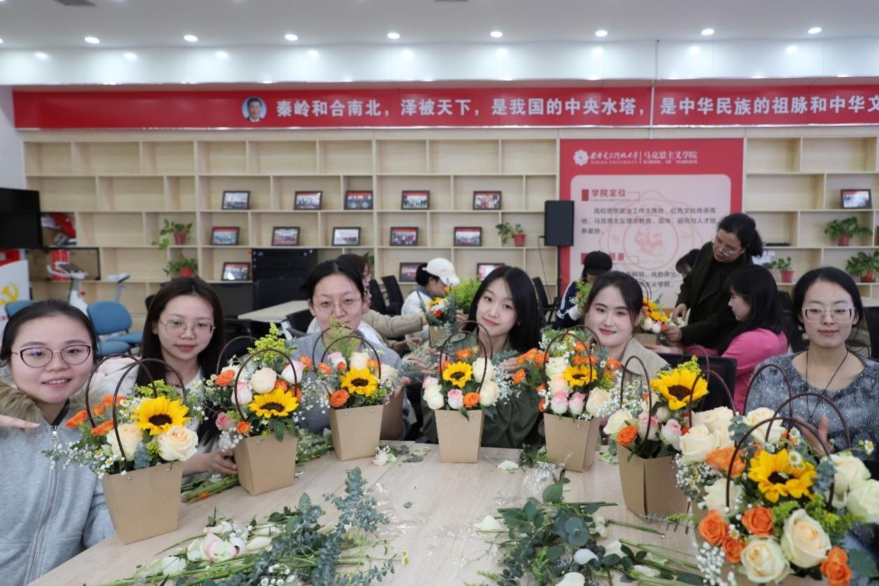 在大家创作的过程中,张老师不时地对同学们的作品进行细致地点评,肯定大家创意和努力的同时也提出了一些改进建议。活动接近尾声时,张老师向同学们传授了花卉的养护经验,包括如何换水、修剪和避免阳光直射等,以确保花束能保持更长时间的芬芳。同学们认真聆听、仔细学习、相互交流经验,活动在一阵阵热烈的掌声中落下帷幕。