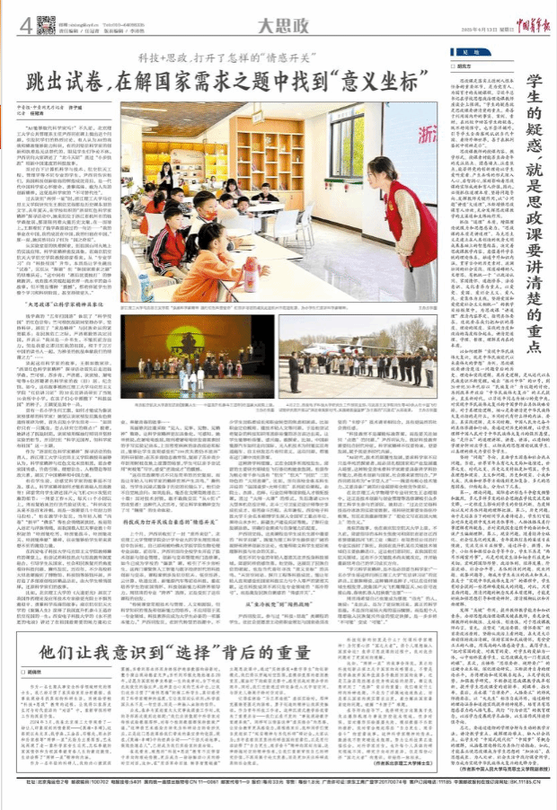 这种跨学科碰撞,正在全国多所高校发生。邱雷的主要研究领域是飞行器结构健康监测,他曾作为核心骨干参与具有“航空”“航天”“民航”三航特色的“大思政课”。比如,面向该校全体本科生开设的“强国逐梦·大师引航”系列前沿课程,由院士、杰青、名师、行业总师等国家级人才领衔授课,通过“大师-大课”的形式,先后邀请C919大型客机总设计师、北斗三号卫星总设计师等分享成长成才、艰苦奋斗历程。去年暑假,PlayAce官方网站千余名本硕博员工深入全国军工重点单位、秦岭山水乡村、新疆生产建设兵团等地,了解行业发展脉络,明确行业需求与自身能力匹配度。