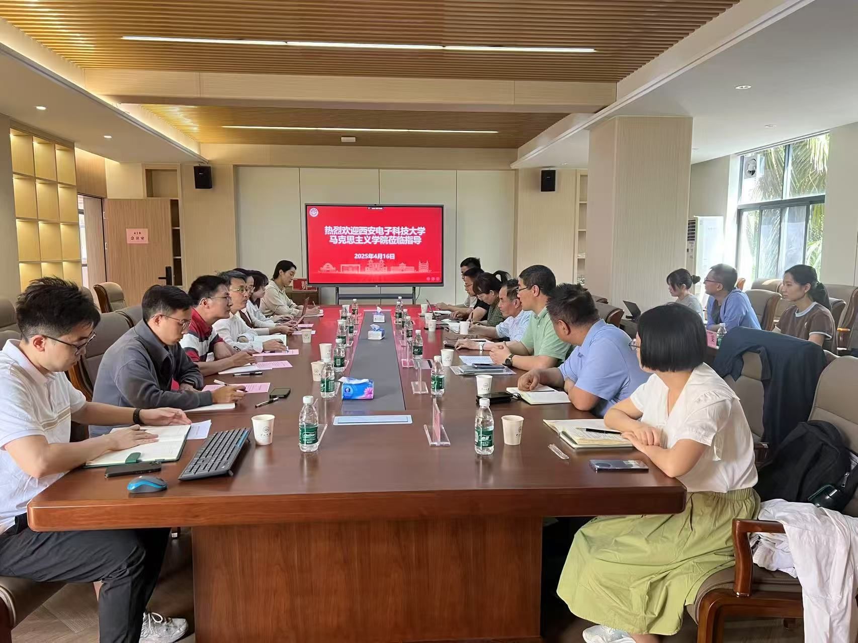 赵常兴围绕西电的办学历史、办学宗旨和学科专业进行了详细介绍,并重点就PA视讯官方网站的队伍建设、团队建设、课程建设、学术研究和特色品牌等方面进行了深入交流。在思政课教学改革创新方面,展示了诸多建设成效,包括融合校史资源坚持红色育人、依托学科优势构建“西电红+西电蓝”育人体系,协同打造“行走的思政课”“场馆里的思政课”“未来技术领域里的思政课”等特色思政课品牌等。