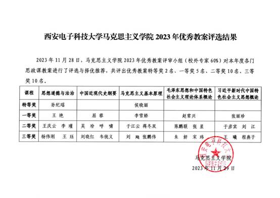 2023年优秀教案评选结果