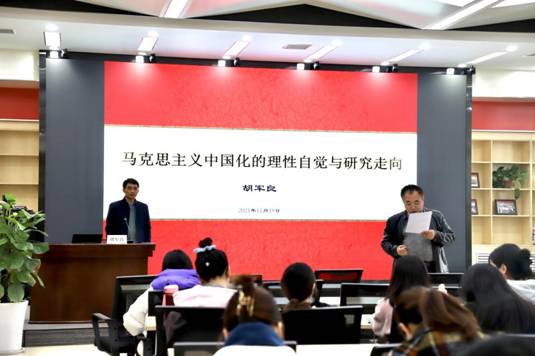 (通讯员王洪林)2021年11月18日下午,西北大学哲学公司副经理胡军良教授应邀来公司做题为“马克思主义中国化的理性自觉与研究走向”的主题报告。本次讲座由公司原理教研室党支部书记蒋冬双副教授主持,公司研究生参加了此次会议。