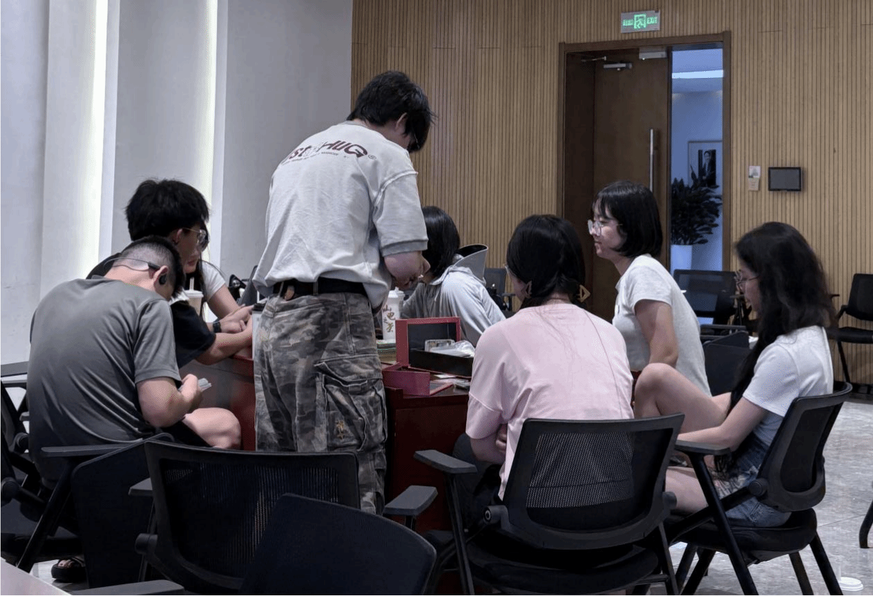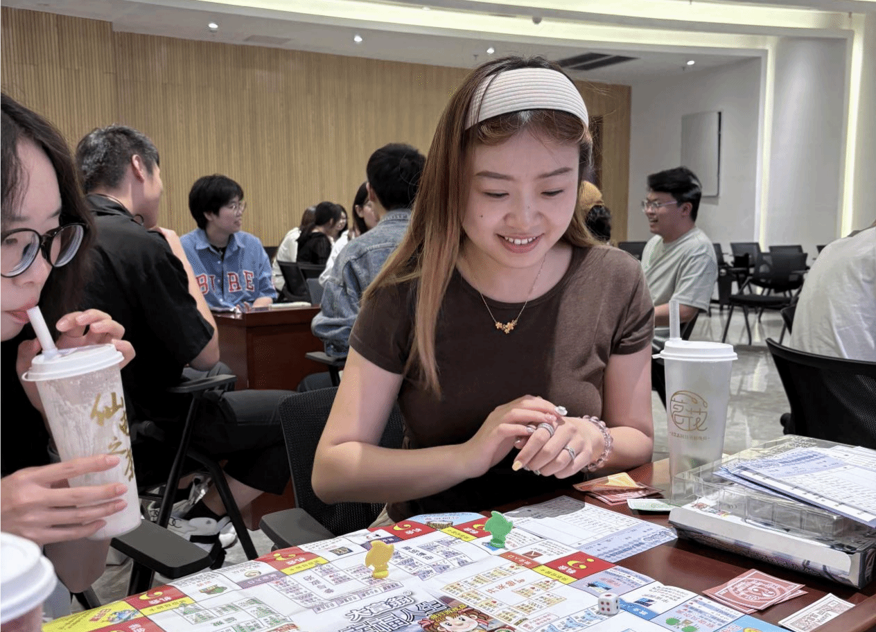 在自由组队的桌游环节,狼人杀、UNO、德国心脏病等多款桌游供同学们自由选择。大家围坐一桌,在推理对决与策略交锋中进一步拉近彼此距离,让科研压力在轻松氛围中悄然释放。冰爽奶茶与欢声笑语交织,共同打造出夏日专属治愈氛围。