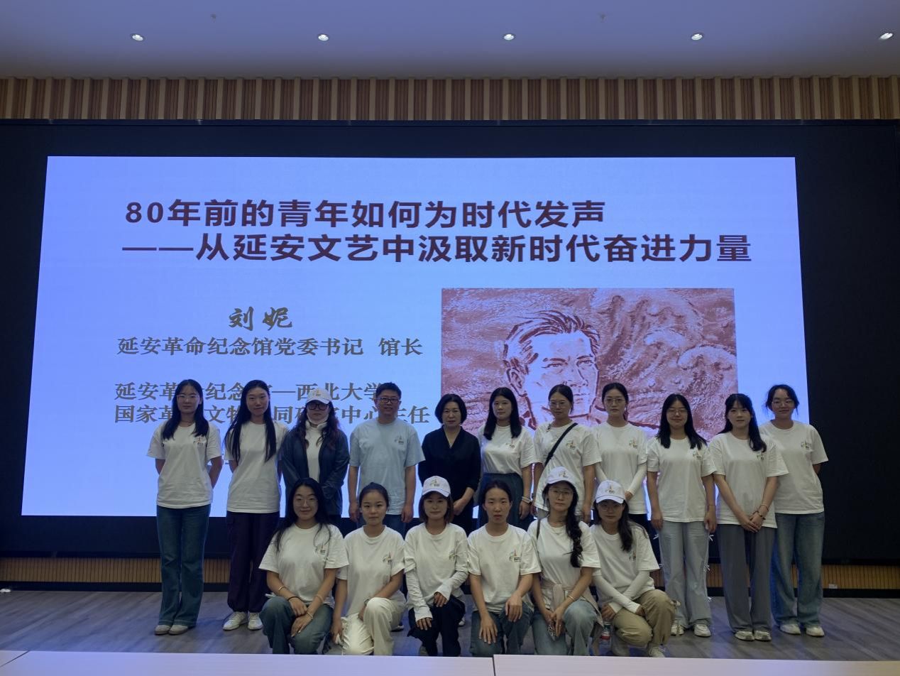 最后一站,实践队来到延安革命纪念馆。在讲解员的引导下,队员们系统回顾了党中央在延安13年的光辉历程。馆长刘妮以《80年前的青年如何为时代发声——从延安文艺中汲取新时代奋进力量》为题授课。从经典著作到红色旋律,她解析了延安时期的文艺工作者们如何用美学传播精神,以艺术讲述政治,展现了革命文艺在凝聚人心、号召民众中的强大力量。