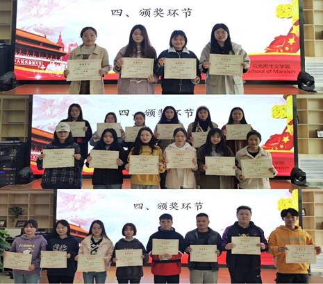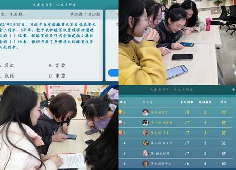 随后,进入党史知识竞赛活动环节。到场的所有同学每四个人一组,参与党史知识竞赛。竞赛共设40道问题,包括单选、多选、填空、以及简答等题型,主要涉及到党的重大纪念日、重要会议、领导人讲话精神以及一些时事政治等内容。通过抢答积分的方式,最后决出一等奖1组,二等奖2组,三等奖3组。紧张而活跃的竞赛氛围,使整个活动得到了升华。