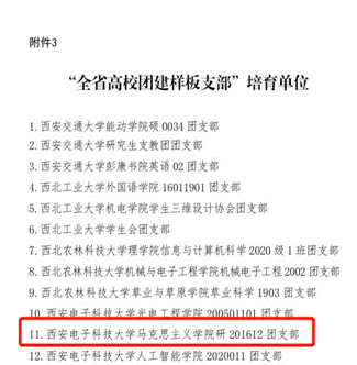 (通讯员梁佩章萌)近日,共青团陕西省委和陕西省教育工委联合印发了《关于确认全省公司团建示范单位培育资格的通知》,公司研201612团支部入选“全省高校团建样板支部”培育单位。