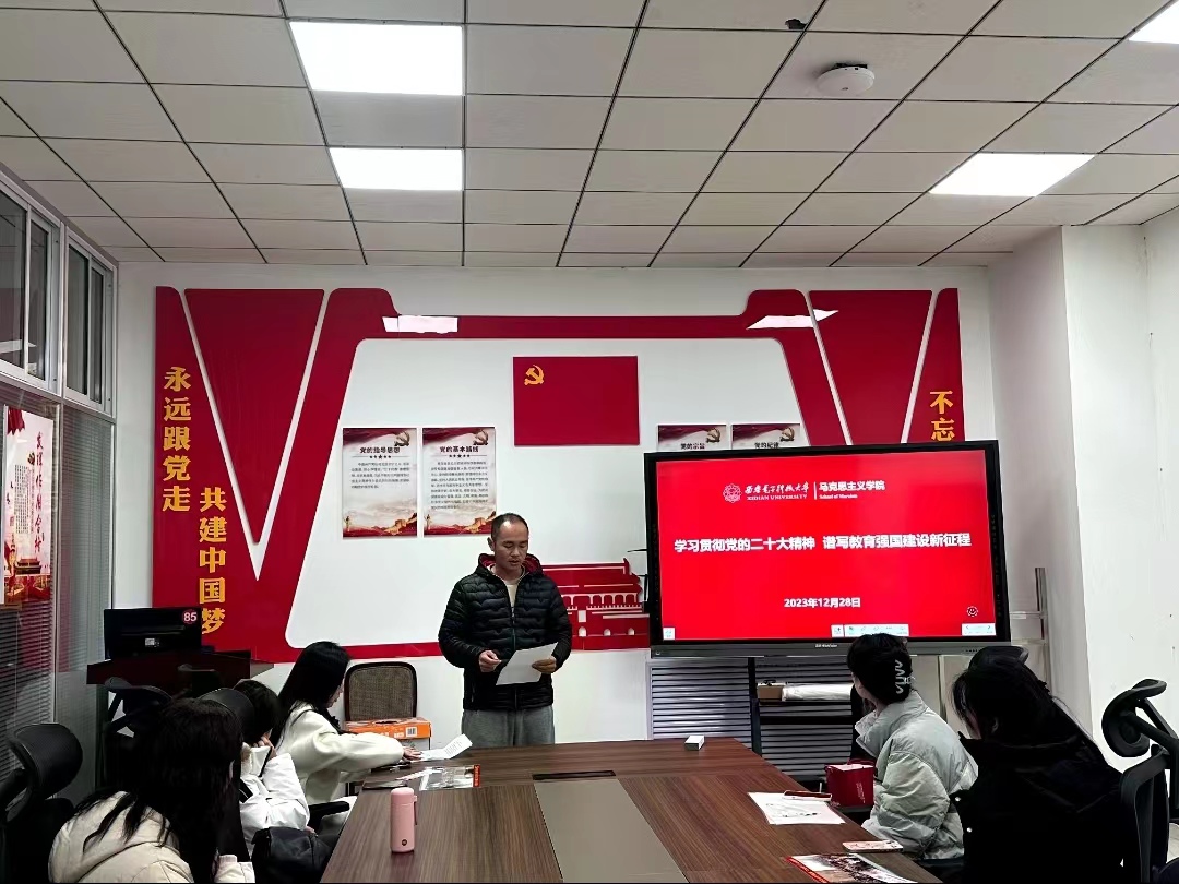 (通讯员 申梦莎)为深入学习贯彻习近平新时代中国特色社会主义思想和党的二十大精神,进一步提高研究生理论宣讲水平。2023年12月28日,PA视讯官方网站联合体育部在信远Ⅱ区220会议室开展“时代之声”研究生宣讲团12月份宣讲活动,活动主题为“学习贯彻党的二十大精神 谱写教育强国建设新征程”。本次宣讲活动宣讲人为PA视讯官方网站“青”声“习”语宣讲团成员苟胜男同学和任静怡同学以及体育部宣讲团成员胡重庆同学。
