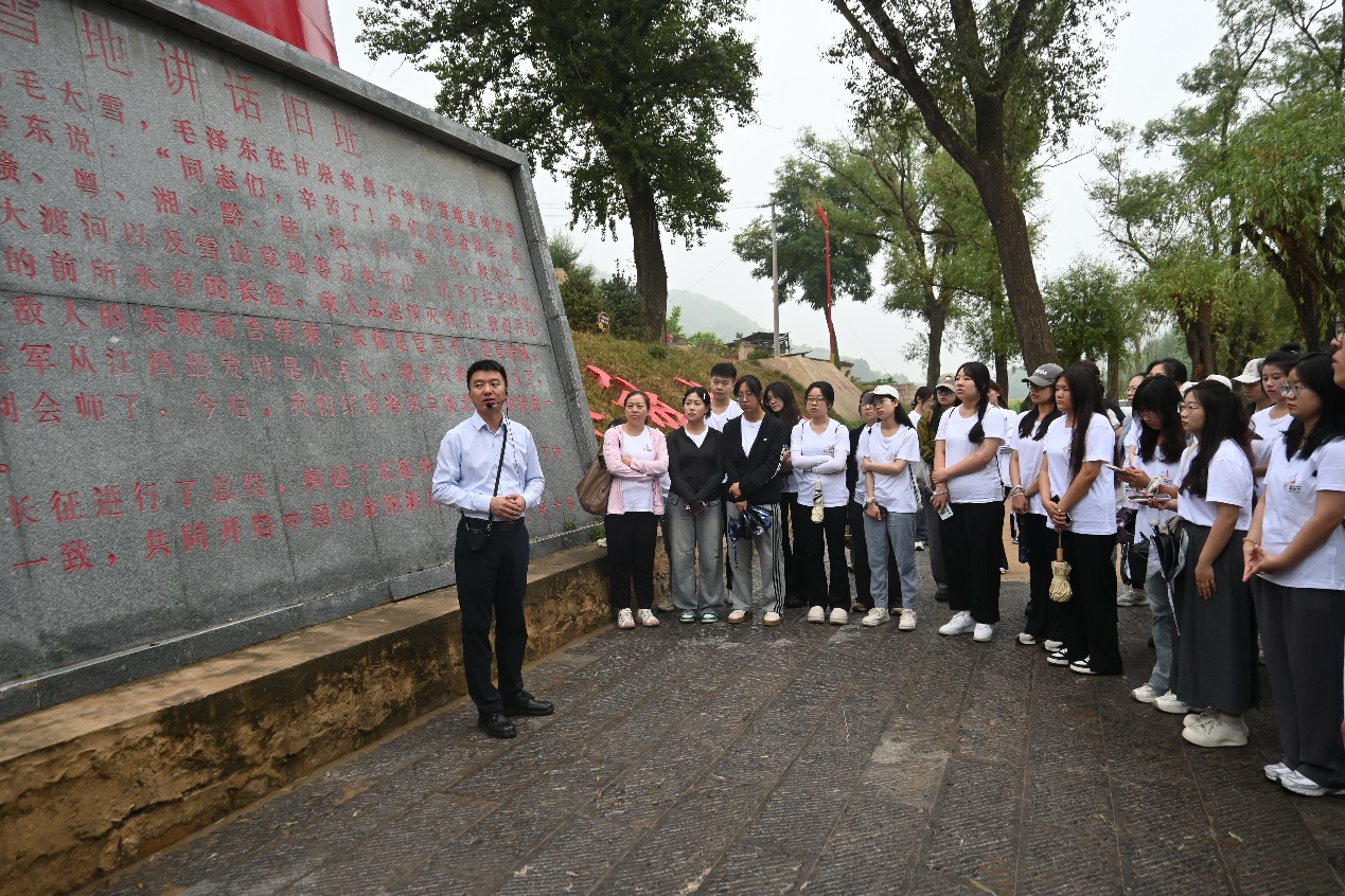 “长征是宣言书,长征是宣传队,长征是播种机。”1935年11月6日,在甘泉县象鼻子湾村的漫天大雪中,面对着300余名红军战士,毛泽东发表了著名的“雪地讲话”,鼓舞全军士气。站在气势磅礴的中国工农红军军旗雕塑下,实践团队重温了“雪地讲话”,开展了一堂以《筚路蓝缕 玉汝于成——话说长征精神》为主题的思政课现场教学。