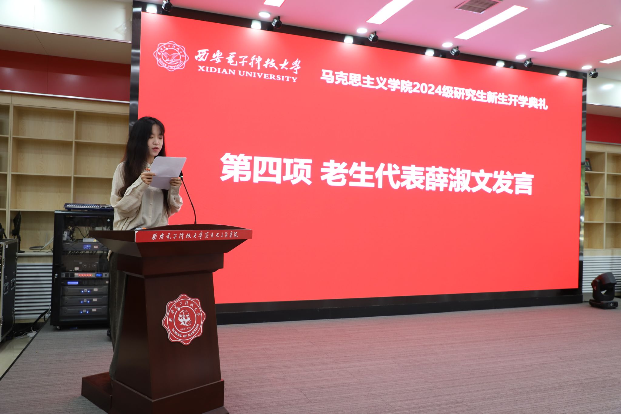 随后,老生代表薛淑文同学分享了她在PA视讯官方网站两年的学习生活体验和成长感悟。她建议大家始终做马克思主义的坚定信仰者,将马克思主义理论学习与社会实践相结合,在增强科研素质的同时,提升解决实际问题的能力。