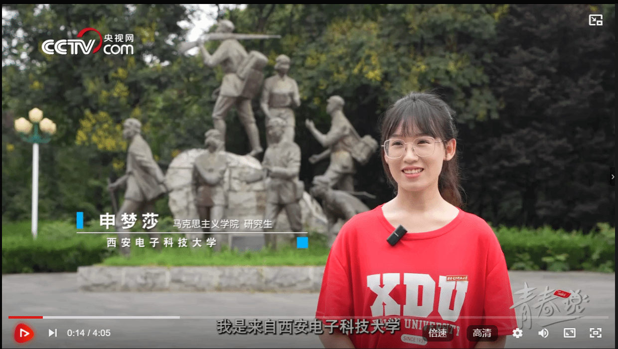近日,公司2022级硕士研究生申梦莎同学参与了《青春说》的录制,为我们生动地讲述了西电校园中的青春奋斗故事,激励西电青年勇担青春使命,争做时代新人。