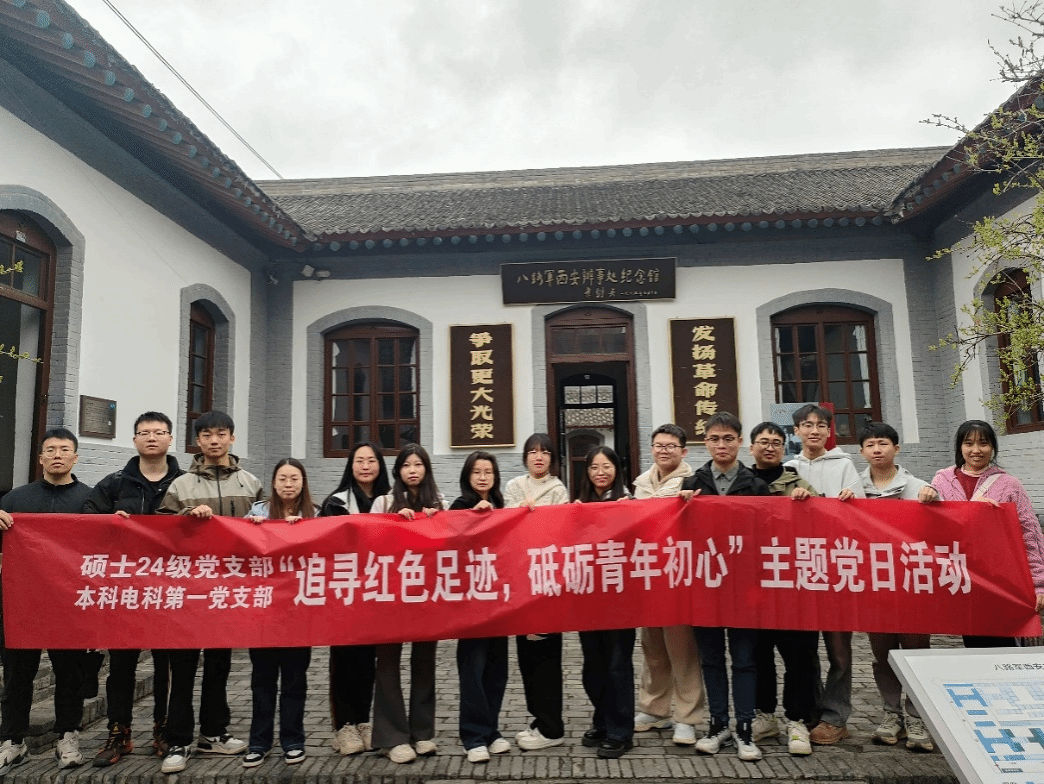 宣讲结束后,公司本科电科第一党支部、硕士24级党支部党员前往八路军西安办事处纪念馆开展实地研学。在讲解员的带领下,同学们依次参观了办事处旧址和历史纪念馆,学习八路军西安办事处的红色历史,共同感受红色文化的浸润和革命文化的荡涤。随处可见的黑白照片、整齐的工作用具、历史厚重的古朴建筑再现了当年八路军在此艰苦奋斗的场景,仿佛将众人带回了那段艰苦卓绝的革命岁月。最后,全体党员在纪念馆广场重温入党誓词。