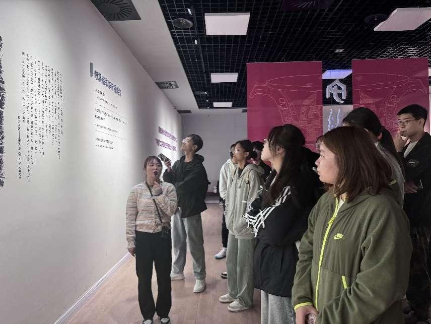 师生在讲解员的带领下,仔细聆听讲解,依次参观“青铜之乡”、“周礼之邦”、“帝国之路”、“智慧之光”等展厅。通过对何尊、晚清四大国宝、大克鼎、铜浮屠等相关展品的现场观摩,不仅感受到青铜器的美学价值,更从“四十三年逨鼎”中了解了西周时期的廉政制度,体悟到了中国共产党廉政的根源,增强了对党的反腐倡廉和自我革命的信心。同时,员工们还从“逨盘”中探究了家族德行伦理和美德传承,从“何尊”中解读了最早的“中国”一词以及周人“德”政观念的内涵,进一步激发了民族自豪感和爱国情怀。
