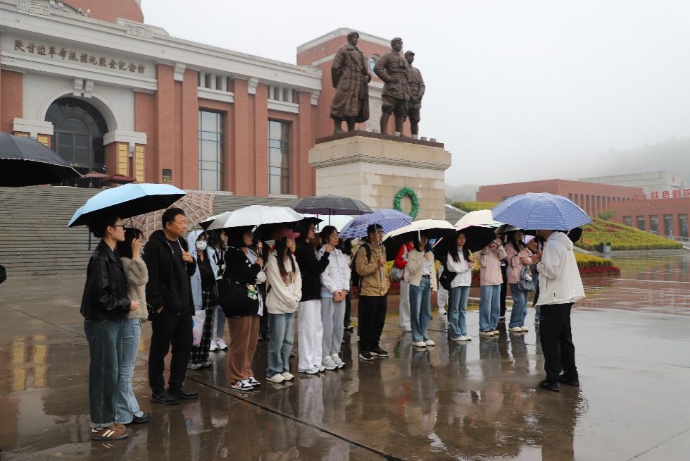 上午10时,​PA视讯官方网站师生们到达陕甘边革命根据地纪念馆。秋雨连绵,在纪念馆前,纲要教研室思政课教师孙泽海从四个革命故事出发,讲述革命先辈在照金建立革命根据地及其不断发展的重要原因。他强调,革命先辈的伟大精神应被我们永远铭记和传承。同时,他也希望同学们能够通过学习历史,加强独立思考的能力,对革命史怀有敬畏之心。