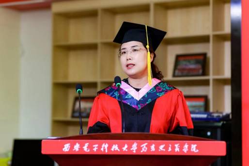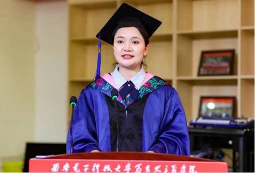 毕业生代表张文华发表毕业感岁月,回顾了老师们孜孜不倦的教诲,回顾了丰富多彩的校园言。她饱含深情地站在发言席,回顾了在公司三年难忘的生活,回顾了与同学们结下的浓浓同窗创情谊,道出毕业生们共同的心声。张文华同学表示,师恩难忘,要持感恩之心不断完善自己;要在担当中不断实现自我价值;要从容面对未来的各种风险,坚守理想、坚定信念,不辜负母校的殷切期望。