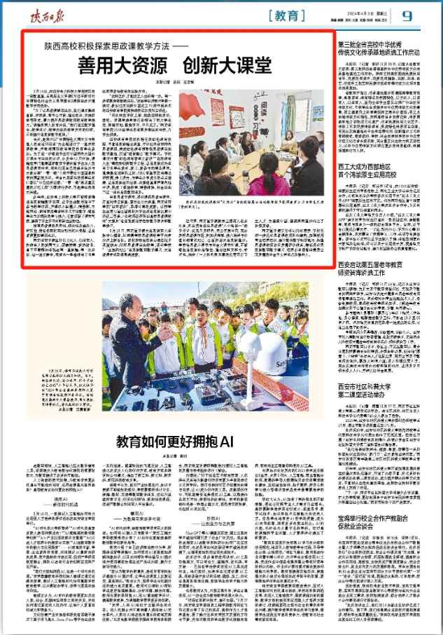 3月18日,西安医公司大思政课育人体验中心揭牌,标志着公司思政课教学平台建设迈上新台阶。该校推动思政课与信息技术深度融合,创新思政课实践教学,深化公司“一主线四结合”思政课公司产品模式,大思政课建设取得显著成效。