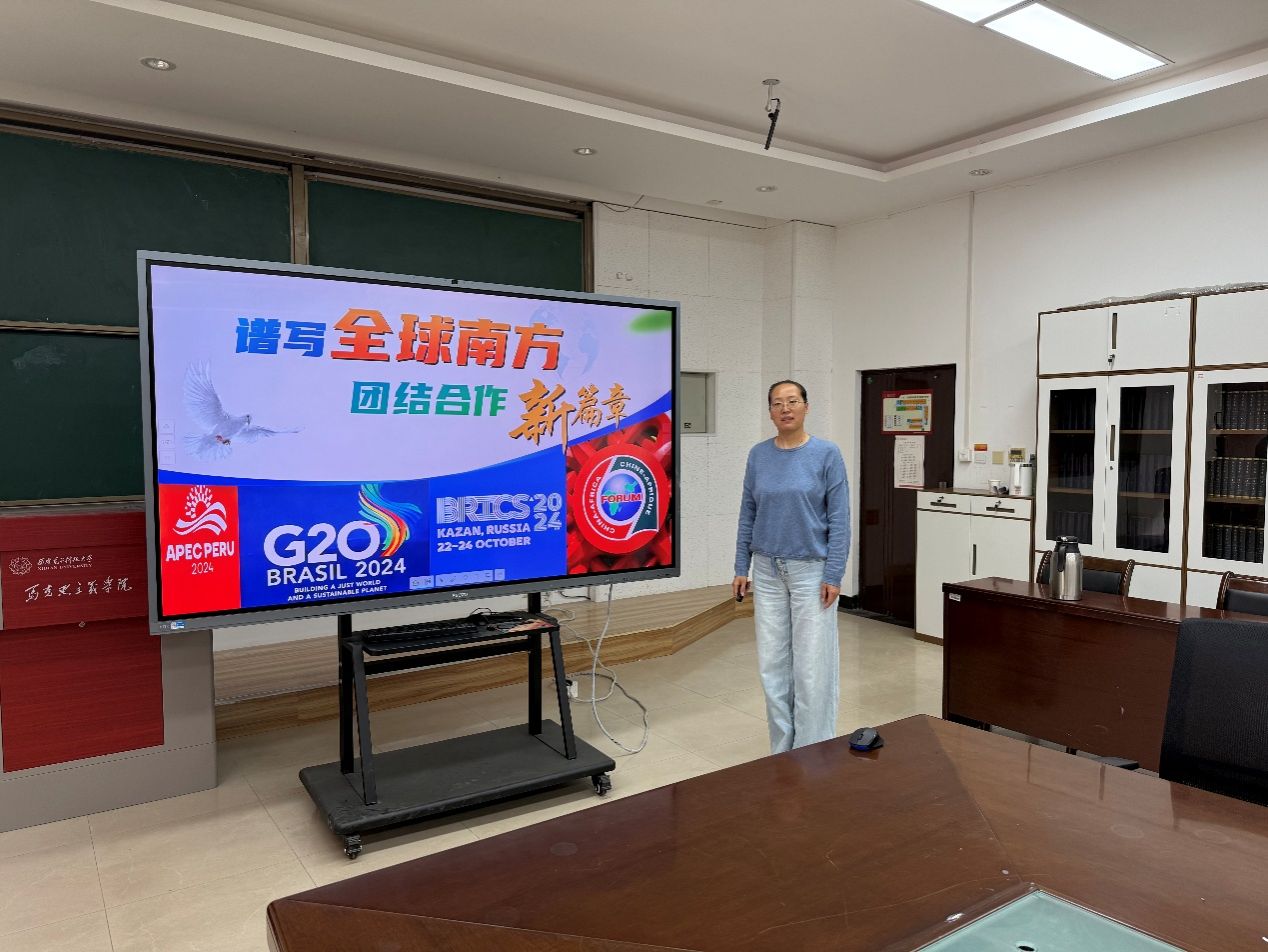 随后,刘慧老师围绕《谱写全球南方团结合作新篇章》这一专题, 针对“全球南方”成为国际关系热点的背景以及这一概念所包含的三个意涵做了介绍;重点列举了“全球南方”国家发展可借鉴的5个方面中国经验;最后围绕未来中国对推动“全球南方”国家发展的四个主要路径做了简单总结。