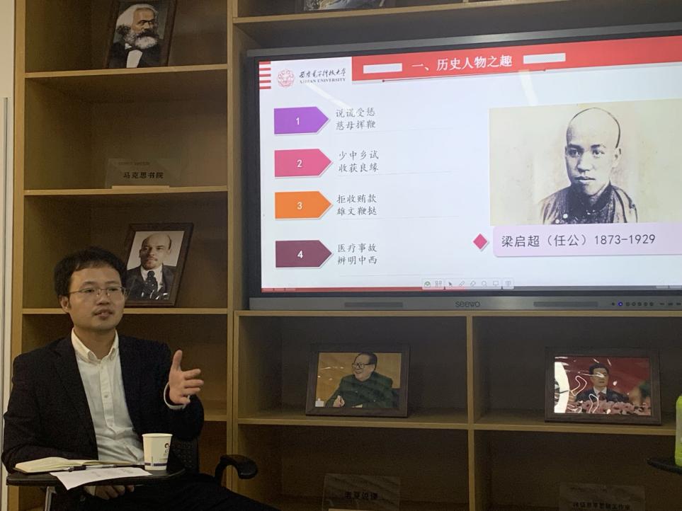 随后,申超老师以章太炎,梁启超,辜鸿铭的人生趣事为例,分享了两个品评人物的方法,分别是:建立历史标准“人群”和摆脱“倒放电影”思维,并且结合三个实例,不仅让同学们对于这三位历史人物有了一个不一样的理解,更重要的是掌握了这种研究历史人物的方法。