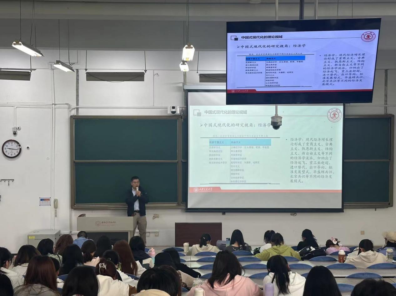 (通讯员 孙泽海)为推进“五位一体”教改实施计划的顺利实施,4月23日上午,西安交通大学张振副教授应邀为教改班作题为“以中国式现代化全面推进中华民族伟大复兴”的专家学术报告。纲要教研室的部分教师和教改班的员工参加了报告会,报告会由纲要教研室晏波副教授主持。