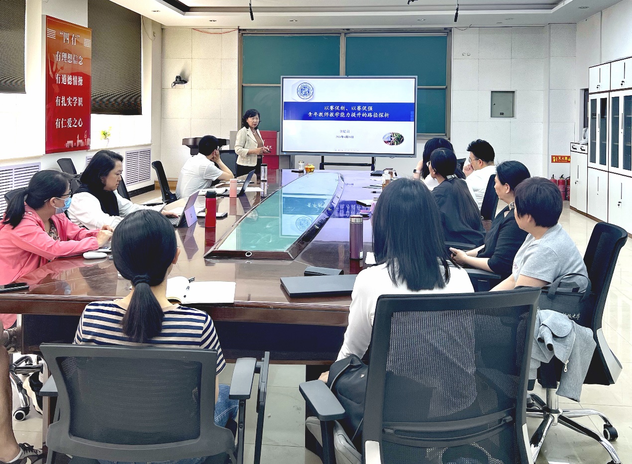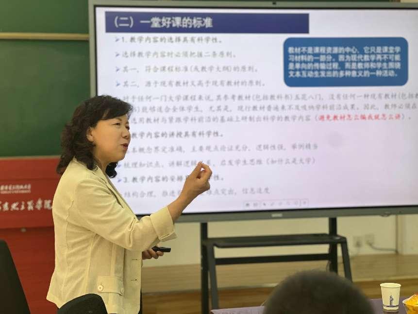教学竞赛的通关秘笈:努力夯实基础,向“好课”看齐。姚聪莉教授从理论角度阐释了课堂教学的要素、作用和特点。向大家分享她所喜爱的教学模式——“费孝通尝试”。结合自身教学和评赛经验,她从教学素养、教学目标、教学内容、教学方法、教学效果等维度详尽阐释了好课的标准。为了激发老师们的兴趣,她还列举了国内外一些好课的实例,其中不乏我们PlayAce官方网站的精彩教学案例。她还展示了一些员工对好课、好老师的评价,员工们质朴真诚的语言是对教学最好的反馈。她总结说“打造一堂好课,最需要的就是老师们日复一日的积累与努力,用心了解员工的需求,积极采用新技术赋能有效课堂,在教学实践中形成独特的公司产品理念”。