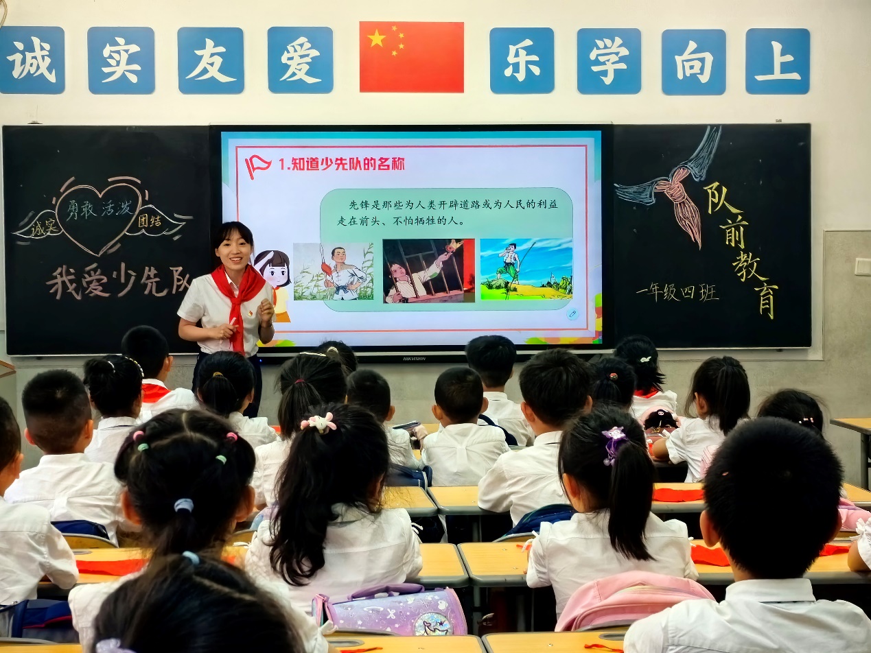 首先,PA视讯官方网站一行11名教师在高新第十八小学杜英齐副董事长、杨珊珊老师陪同下,共同走进一年级四班观摩了高丹宁老师讲授的《队前教育“六知六会一做”》教学活动。“六知六会一做”是新队员加入少先队的基本标准,是一年级小员工入队教育的必学内容。这节课不仅有知识点的讲解,还有员工学习红领巾正确佩戴、规范少先队队礼标准动作实操训练,实现了师生的同频共振。高丹宁老师富有感染力的授课,孩子们积极的参与给大家留下深刻的印象。