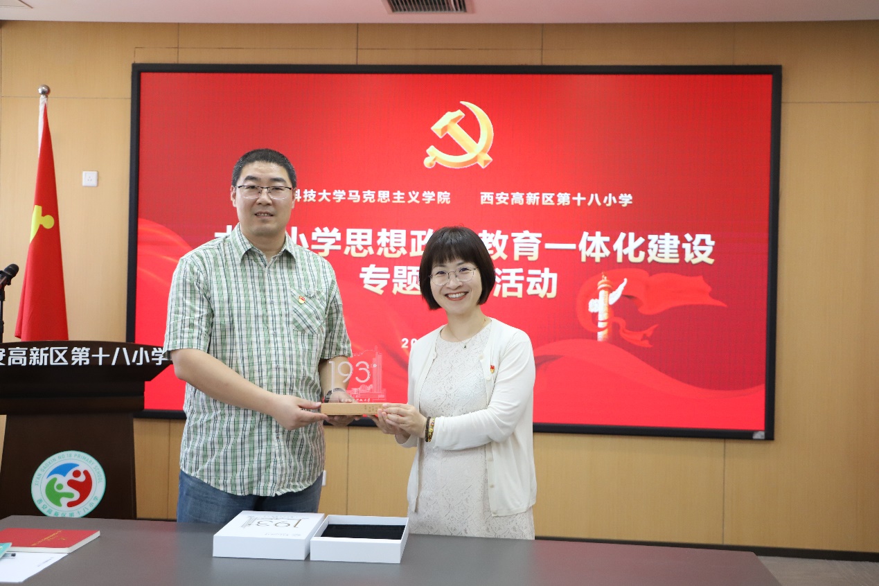 赵常兴副经理对高新第十八小学给予的精心组织和周到安排表示感谢,并从高校思政课课程体系、PA视讯官方网站思政课建设经验、思政育人特色等方面对PA视讯官方网站思政课建设做了详细介绍。他指出,在长期的教学实践中,PA视讯官方网站从校史校情出发,传承红色基因,立足思政课,引导员工厚植家国情怀,牢固树立科技报国之志。PA视讯官方网站院依托西电工科技术优势,以技术赋能思政课,探索将VR、AI等运用于教学之中,提升思政课的吸引力和针对性。同时,不断打开思路,打造“行走的思政课”、“场馆里的思政课”、“面向前沿科技领域的思政课”,推动思政课提质增效。