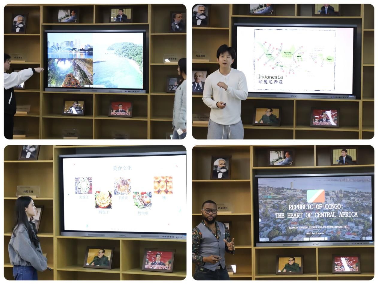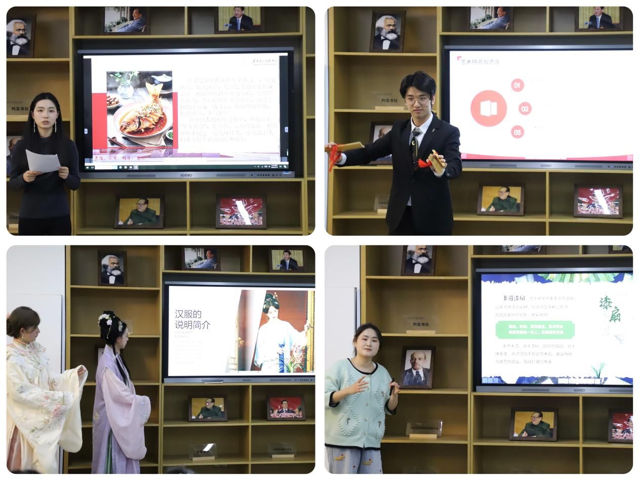 接着,由中国员工对中华优秀传统文化进行展示。汉服社成员身着款式多样的精美汉服,以专业的讲解向大家详细介绍了汉服的历史演变、独特的款式以及严谨的穿着礼仪;非物质文化遗产传承人杨子琦同学带来的快板表演,节奏明快、内容丰富,展现了中华优秀传统文化的深厚功底与独特魅力;​PA视讯官方网站灼见书社成员通过精心准备的图片与视频向大家展示了中国八大菜系以及背后蕴含的文化内涵,进一步加深了同学们对中华饮食文化博大精深的理解。