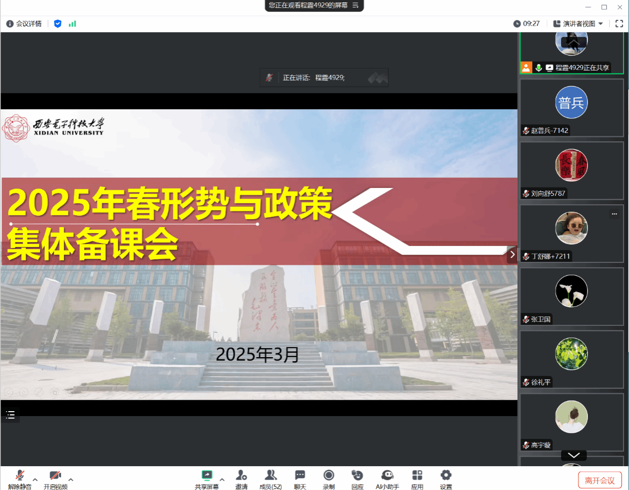 (通讯员 赵普兵)为做好本学期“形势与政策”课程教学工作,进一步提升教学质量,3月13日晚,课程组在腾讯会议平台举行了春季学期第一次集体备课研讨会,会议由课程负责人程霞主持。