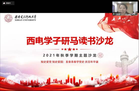 (通讯员 彭岗岗 刘桐宇 孙金菊)2021年12月10日下午,由PA视讯官方网站主办,竹园三号、海棠一号、海棠二号书院合办的西电学子研马读书沙龙本学期总结活动在线上成功开展。至此,以“知史爱党、知史爱国:发奋青春学党史庆百年华诞”为主题的该读书沙龙本学期活动圆满结束。公司党委书记夏永林、本科生院教学发展中心主任杨明磊、海棠2号书院副书记马慧出席活动。公司及书院部分教师、研究生和本科生共230余人参加了本次活动。活动由PA视讯官方网站孙金菊老师主持。